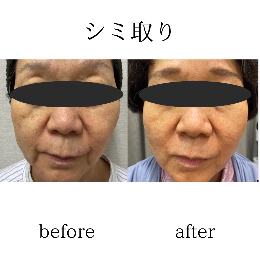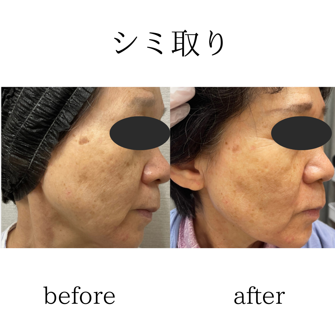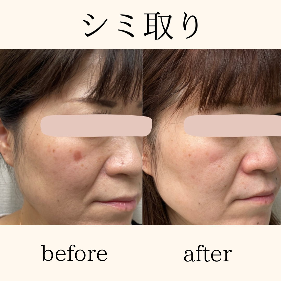 シミ取り放題 100ショットまで BEFORE AFTER 受けた施術 シミ・くすみ リスク・副作用 シミ取り照射に共通するリスクとして稀に火傷、炎症後色素沈着、色素脱失、瘢痕化が挙げられます。 詳細はこちら