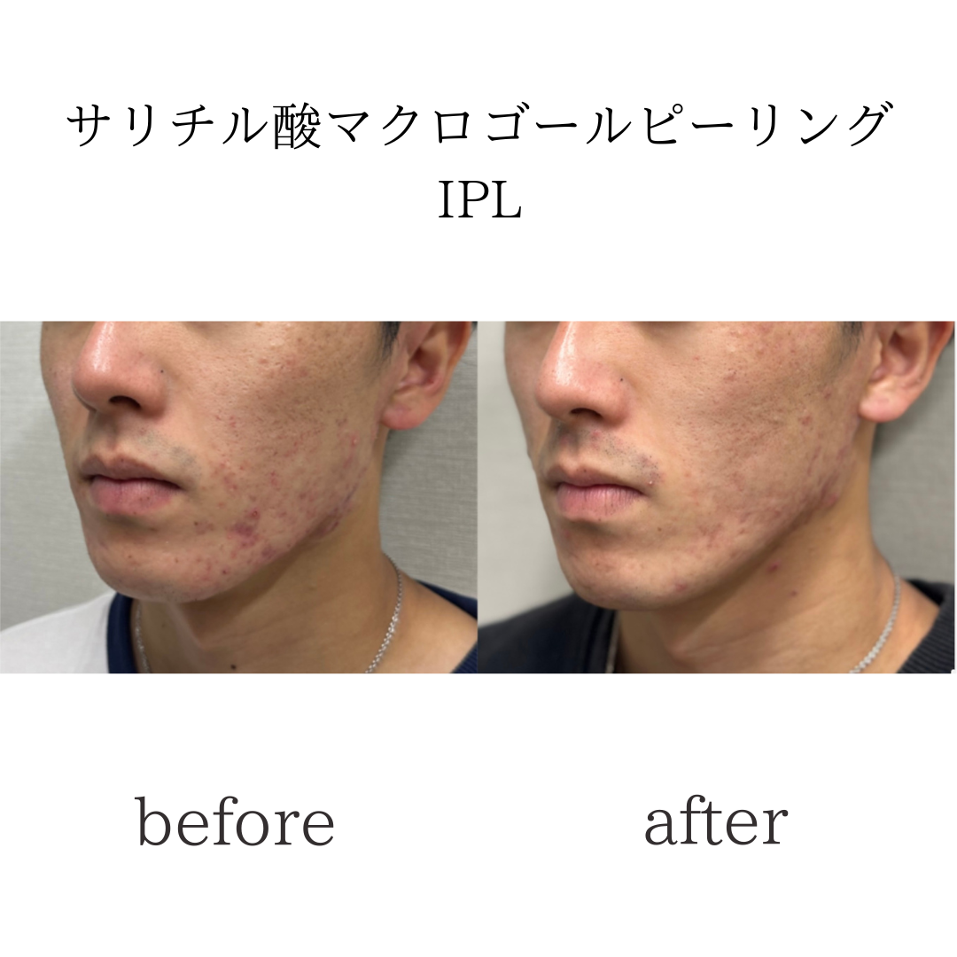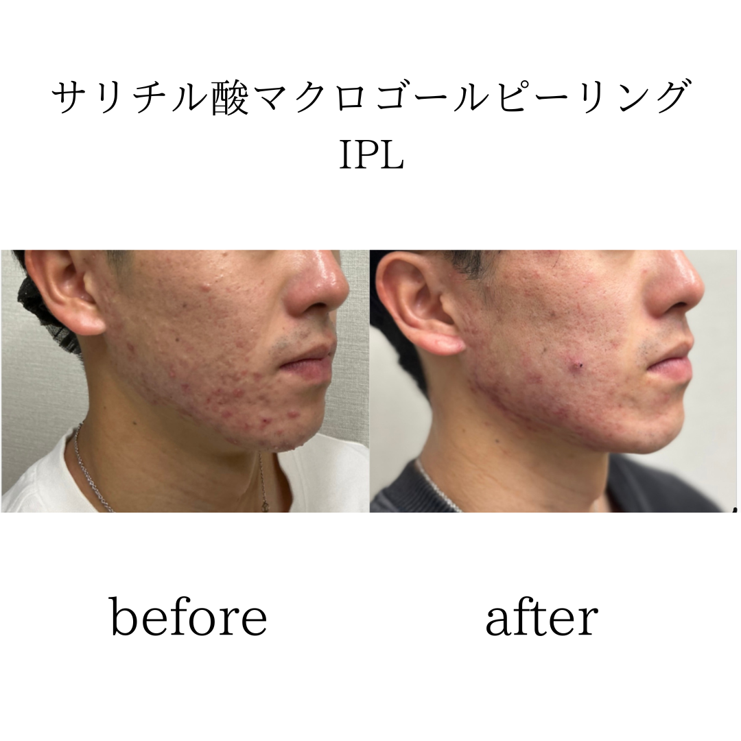 IPL:熱感、紅斑、シミやニキビの色味が一時的に濃くなる、痂皮、乾燥、火傷、色素沈着が挙げられます。