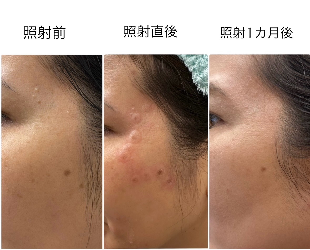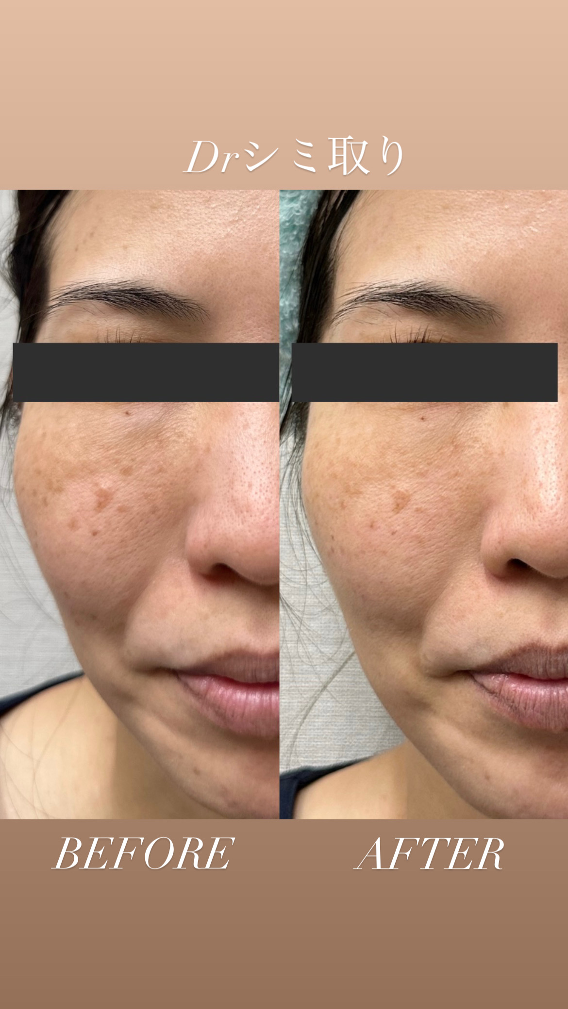 シミ取り放題100ショットまで BEFORE AFTER 受けた施術 シミ・くすみ リスク・副作用 シミ取り照射に共通するリスクとして稀に火傷、炎症後色素沈着、色素脱失、瘢痕化が挙げられます。 詳細はこちら