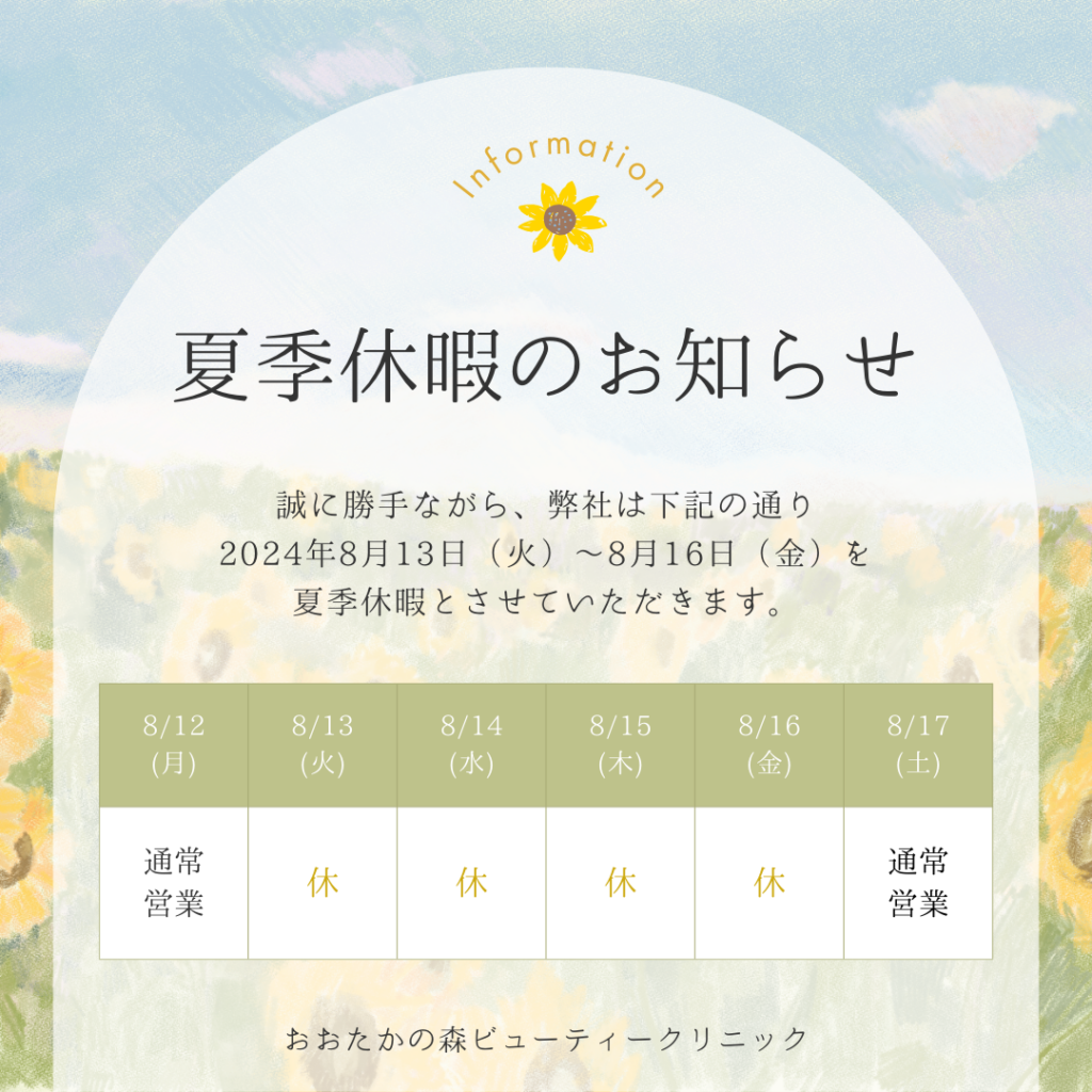 誠に勝手ながら、8月13日(火)から8月16日(金)まで夏季休暇となります。